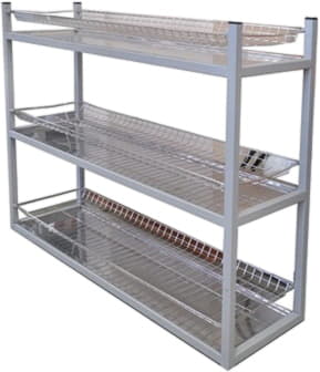 Кухонный стеллаж VIATTO ПКТ-3-ЮТ предназначен для хранения или сушки тарелок, стаканов и другой кухонной посуды. Каркас изготовлен из оцинкованной стали, сетки хромированные.