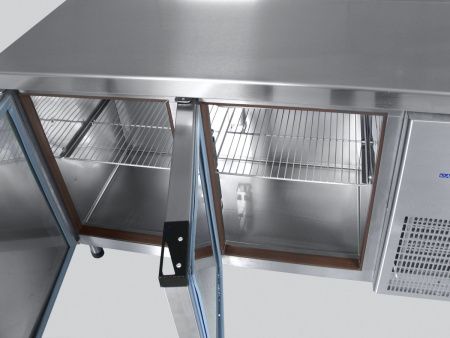- Температурный диапазон: от -2 до +8 °C в охлаждаемом объеме и от +5 до +15 °C на столешнице, что позволяет поддерживать необходимые условия для различных продуктов.